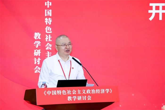 刘伟教授为大会做主旨报告。他指出中国特色社会主义政治经济学是基于我国伟大的历史实践提出的理论体系。教材是自主知识体系最有效的表达形式,他强调要深刻理解和领会党中央将教材上升为“国家事权”的重大意义。人大编写组版本的《中国特色社会主义政治经济学》具有五大特点:一是紧扣时代主题,回答时代的问题;二是坚持唯物史观,基于实践去发现问题和研究;三是扎根中国实际,基于中国实际回应“国家需要”;四是开展术语革命,将中国典型事实凝聚成学术基本范畴;五是注重知识体系的构建,把握范畴之间的内在逻辑。