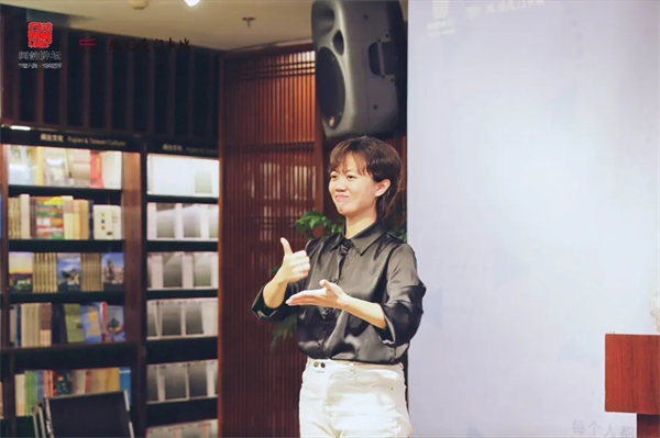 活动伊始,肖老师以“手语是什么”“为何学手语”“如何学手语”为主线展开演讲。她指出,手语是与汉语、英语、法语等有声语言平等的自然语言,拥有独立的语法体系。每个国家都有自己的手语,同一个国家的手语还有方言的区别。针对聋人群体现状,她有过多年的观察和深度采访。九成以上聋孩的父母是健听人,很多听人父母不学手语,有的聋人长大了也没机会学手语这门对他们来说非常容易习得的语言,而是一直在艰苦地进行着非常枯燥的口语康复训练,拼尽全力学习说话,适应主流听人社会,因为不能开口说话在社会上就会面临重重障碍。所幸,我们国家近年来在大力推进无障碍社会环境建设。对于很多即使戴助听器、做了人工耳蜗但是仍然听力补充不能到位,很难学习开口说话的聋人,我们能做的就是学习手语,朝着一直在奋力适应听人社会的他们迈出小小的一步,实现聋听群体的“双向奔赴”,让我们的社会变得更有温度,更无障碍!