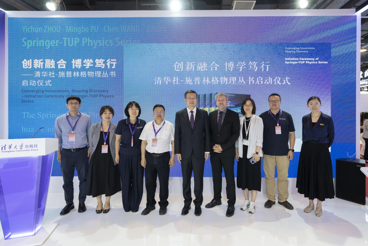 2025年6月19日下午,在第31届北京国际图书博览会(BIBF)清华大学出版社展台,清华大学出版社与施普林格·自然(Springer Nature)联合举行“清华社—施普林格物理丛书”启动仪式。清华大学出版社社长赵鑫,施普林格・自然全球执行副总裁暨图书总裁汤恩平博士(Dr. Niels Peter Thomas),丛书主编、西安电子科技大学周益春教授等出席活动。