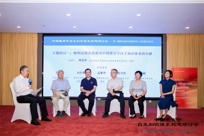 6月20日,中国教育学自主知识体系构建研讨会暨《顾明远教育思想研究》英文版首发式在北京举行。北京师范大学资深教授顾明远,中国教育科学研究院党委书记、院长李永智出席会议。该书主编北京师范大学王英杰教授,以及20余位来自全国多所高校和科研单位的教育学者开展了为期一天的学术研讨,60余位教师、北师大学生、教育企业和媒体代表等参与会议。
