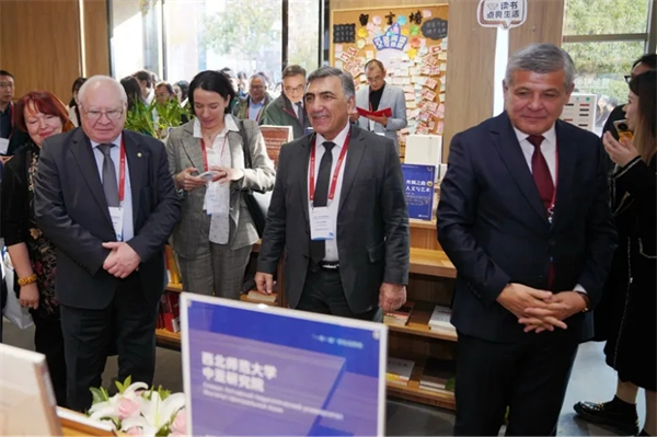 陕西师范大学出版总社自觉纳入国家文化发展大局,积极服务“一带一路”倡议,注重国际交流合作,借力政策支持,通过平台搭建、海外设点、版权输出,在多渠道、多途径、多角度服务出版“走出去”上不懈努力。发起成立了“丝绸之路”俄语出版翻译基地、文化·文学“走出去”译介出版基地、“‘一带一路”小语种翻译出版基地等,近几年累计输出图书版权百余种,项目连年入选国家“丝路书香工程”“经典中国国际出版工程”“中国当代作品翻译工程”,多次入选中华学术外译项目等,并获得多项荣誉,“走出去”工作推进有力,成效显著。在陕西师范大学支持指导下,陕西师范大学出版总社全面参与由学校主导成立的“丝绸之路图书档案出版联盟”各项工作,在哈萨克斯坦成立“中国主题图书海外编辑部”,是落实联盟工作的重要方面,更是弘扬“中国—中亚精神”,以更加进取的姿态和更加务实的举措加强合作,拉紧同心同德、相知相亲的人文纽带的重要体现。