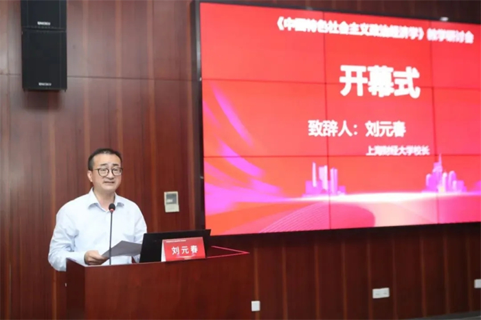 上海财经大学校长刘元春教授出席开幕式并致辞。他表示,上海财经大学在一流经济学科建设中始终坚持把习近平经济思想摆在重要的战略地位,政治经济学特区、中国式现代化研究院和习近平经济思想研究院建立以来,产出了一系列代表性研究成果,积极服务国家和地方经济社会发展,夯实立德树人的财经专业基础,为培养具有新时代中国特色社会主义政治经济素养的高水平财经领军人才作出重要贡献。他表示,《中国特色社会主义政治经济学》作为“马工程”重点教材和“中国系列”原创性教材中首批出版的中国经济学教材,以习近平经济思想为主线,系统总结了中国经济建设发展的丰富实践,梳理了中国经济理论的独创性贡献,为构建中国自主知识体系提供了坚实的支撑。他指出,构建中国特色社会主义政治经济学学科体系、学术体系和话语体系,关键在于如何将中国经济奇迹的实践经验转化为系统化的经济学说,形成中国自主的经济学知识体系。本次研讨会将有助于深化课程建设,推动教学创新,推进优质资源共享,为中国特色社会主义政治经济学的学科发展和人才培养注入新动力。