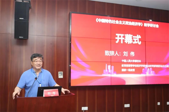 中国人民大学原校长、教育部等学校经济学类专业教学指导委员会主任委员刘伟教授为大会致辞。刘伟教授首先对出席本次会议的专家学者表示了感谢。他指出,中国特色社会主义政治经济学的发展已经进入新时代,这具有三个方面的重要启示:一是中国式现代化对中国特色社会主义政治经济学的理论发展提出了更高要求;二是中国式现代化实践进程提供的丰富经验为理论发展提供了实践基础;三是党的创新理论特别是习近平经济思想为中国经济学和中国特色社会主义政治经济学的发展提供了理论基础和思想遵循。中国特色社会主义政治经济学教材的出版是理论发展的一个重要表现。他表示,必须深刻理解和领会中央将教材上升为“国家事权”的重大意义,即教材编写首先需体现国家意志、反映国家利益。就教材编写思路,刘伟教授提出了四个方面的重要原则:坚持问题导向;坚持研究方法的科学性;注重思想引领和理论创新;坚持逻辑严谨,注重构建范畴之间内在的逻辑关系,完善话语体系。