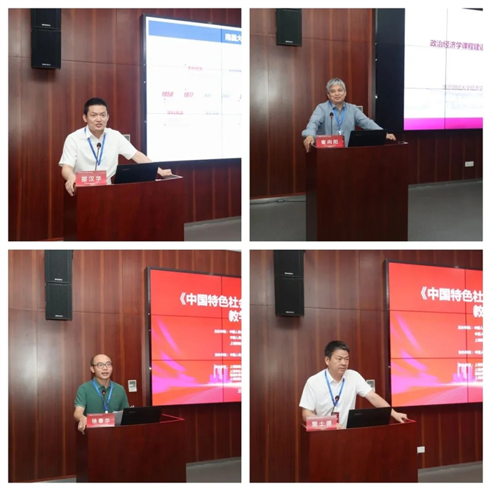 福州大学原副校长黄志刚教授围绕本校中国特色社会主义政治经济学的课程建设和相关教材的使用情况展开了分享。复旦大学党委宣传部副部长高帆教授围绕如何理解和体现中国特色社会主义政治经济学的“特色”进行了发言。华东师范大学经济学院院长殷德生教授就中国经济学本科教学的体系化和学理化提出了问题和思考。合肥工业大学副校长吴华清教授对本教材内容进行了总结,提出需要强化理论与实证结合等教学实践问题。曲阜师范大学副校长刘刚教授主要围绕本教材的体系逻辑展开了分享。福建师范大学经济学院院长黄瑾教授主要论述了本教材的继承性、民族性、原创性和时代性。浙江大学经济学院副院长方红生教授围绕本教材第六章中国特色社会主义宏观经济治理部分进行了交流和探讨。浙江财经大学经济学院院长罗俊教授重点论述了本校政治经济学学科建设的现状、挑战和思考。南京审计大学经济学院院长樊士德教授对本教材总体框架和内容设计的原创性进行了分析,并提出丰富教学资源等建议。山东工商学院副校长杜曙光教授围绕本教材的理论分析框架和教学思路展开了分享。南昌大学经济管理学院副院长邵汉华教授从教材内容出发,分享了关于如何在习近平经济思想引领下建设政治经济学课程的思考。南京财经大学经济学院副院长崔向阳教授重点介绍了本校政治经济学学科的发展历程和课程建设现状,并且提出注重人才梯队建设等建议。厦门大学经济学院徐春华长聘副教授指出,本教材能够有效解答学生在中国特色社会主义政治经济学课程中对政治经济学研究对象和研究方法的疑惑。
