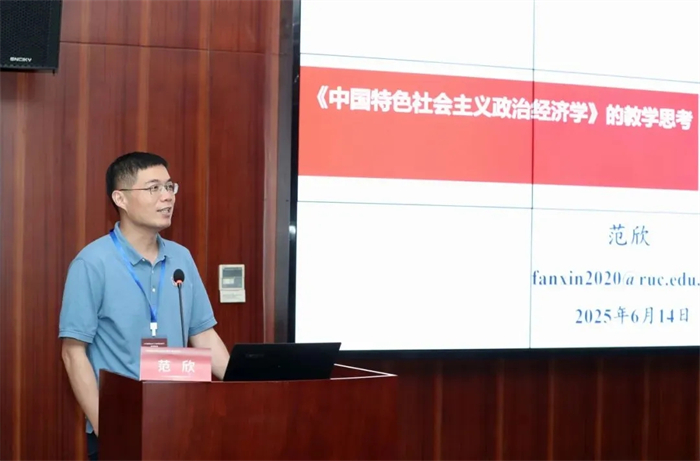 中国人民大学经济学院副院长范欣教授聚焦教学实践,提出了教材应用的系统性方案。他针对“专业课与思政课定位”“体系庞杂与逻辑主线”“理论联系实践”三大教学难点,提出“学理—道理—哲理”三阶教学法。他建议通过对比西方经济学研究范式,凸显中国特色社会主义政治经济学的阶级性与科学性,并以“问题导向”串联各章节。他还介绍,中国人民大学经济学院将于2025年暑期举办“政经大讲堂”第十七期,面向全国高校教师开展教材专题培训,为构建对应的教学体系提供专业化支撑。