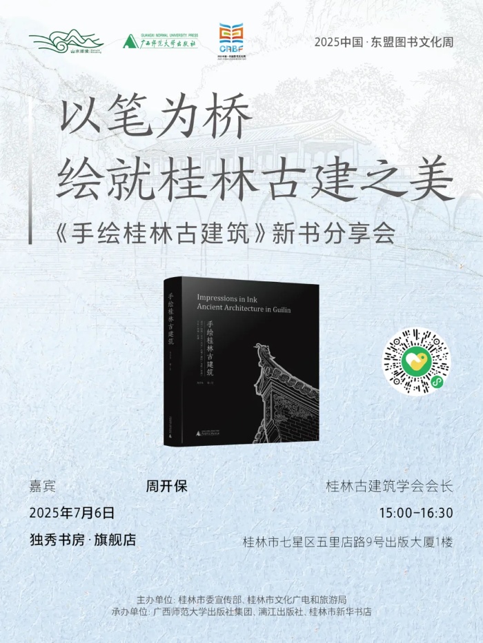 7月6日,让我们相约桂林七星区的独秀书房,与《手绘桂林古建筑》作者周开保面对面,走进一场关于建筑、艺术与文化遗产的跨界对话。