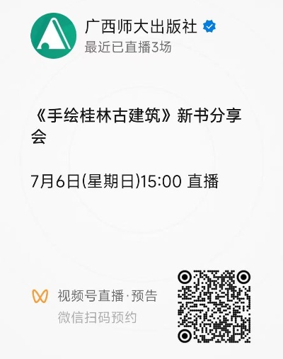 分享以《手绘桂林古建筑》的创作理念展开,作者将讲述创作背后的故事,还原古建隐藏的细节,解析解析桂林古建筑的文化底蕴与美学密码,分享龙胜侗寨、恭城村落等田野考察见闻,跟现场读者共同探讨古建筑保护与艺术表达的当代意义。