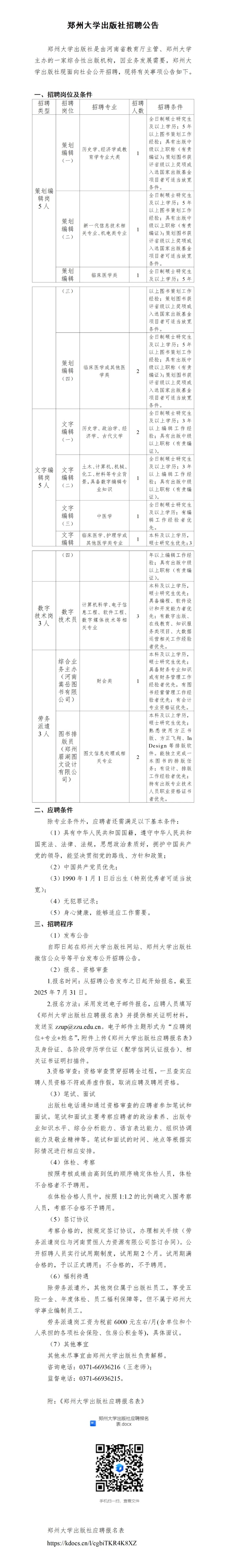 郑州大学出版社招聘公告 - 招聘信息 - 中国高校教材图书网