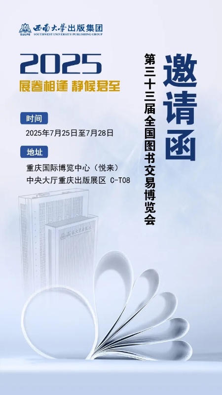 当嘉陵江的风拂过书香满溢的山城,第三十三届全国图书交易博览会即将在重庆拉开帷幕!作为扎根重庆的文化传播者,西南大学出版集团携众多好书亮相,为这场书界盛会注入滚烫的文化热度。