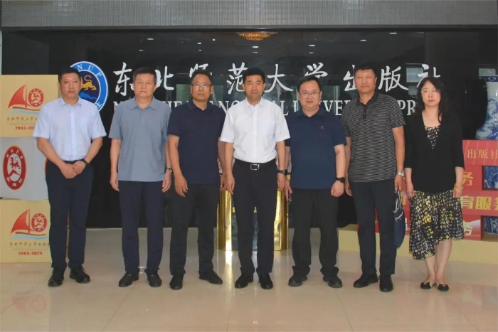 7月17日,吉林省委宣传部副部长王迪、出版处副处长佟子华到东北师范大学出版社调研,东北师范大学党委副书记庞立生,出版社董事长、社长曲春波及领导班子成员陪同调研。
