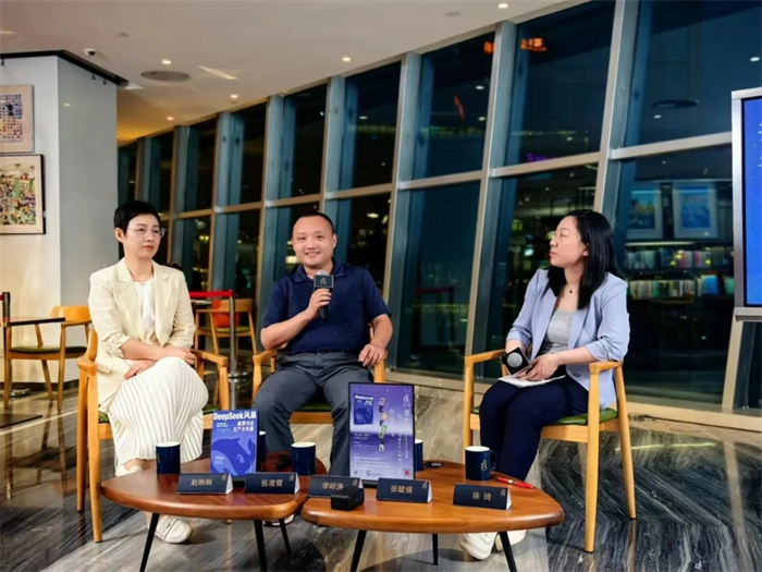 7月19日19点,《DeepSeek风暴:重塑内容生产与传播》线下新书分享会在北京SKPRENDEZ-VOUS书店拉开帷幕。没有沉闷的学术报告,也没有冗长的理论讲解,而是一场轻松、深入、充满人文关怀的思想碰撞。中国传媒大学出版社社长张毓强教授、北京体育大学新闻与传播学院院长李岭涛教授,以及本书两位作者张凌霄、赵琳琳,中国传媒大学媒体融合与传播国家重点实验室新媒体研究院副研究员徐琦展开了一场有深度、有温度的对话。