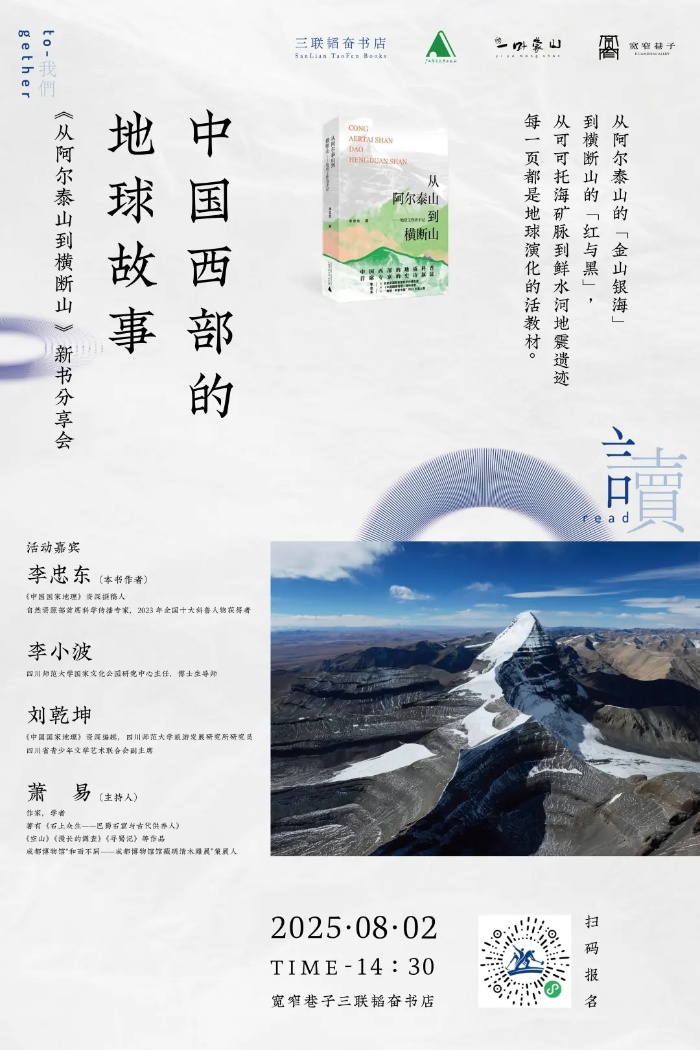 8月2日(周六)14:30,我们邀请到《从阿尔泰山到横断山》作者李忠东,带领我们以地质专家的专业视角,去看地球演化史与人类文明史交织,在文字间去感受一幅跨越时空的西部地理图景。