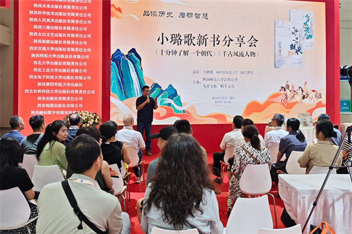 7月25日上午,由陕西师范大学出版总社、西安凡章文化传媒有限公司、陕西蜻米文化传媒有限公司联合举办的“品读历史 磨砺智慧:小璐歌新书分享会”在书博会上举行。自媒体知识博主、600万+粉丝大V小璐歌携两本新书《十分钟了解一个朝代——听小璐歌讲中国历史》《千古风流人物——听小璐歌讲历史名人》出席活动。