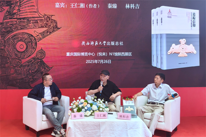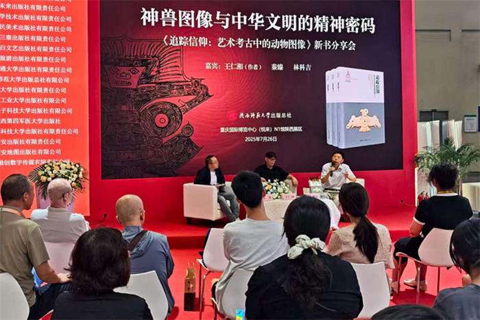 7月26日下午,由陕西师范大学出版总社主办的《追踪信仰:艺术考古中的动物图像》新书分享会在书博会上举行。图书作者、著名考古学家王仁湘教授与四川美术学院教授秦臻、四川省社科院副研究员林科吉出席活动。