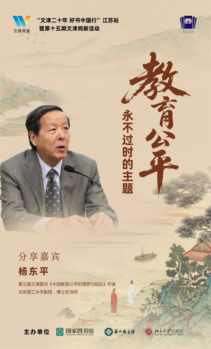 分享嘉宾:杨东平,第三届文津图书《中国教育公平的理想与现实》作者,北京理工大学教授,博士生导师