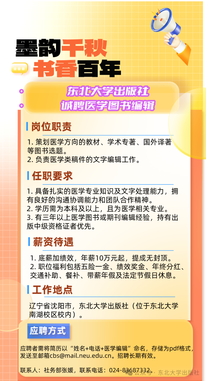 东北大学出版社诚聘医学图书编辑 - 招聘信息 - 中国高校教材图书网