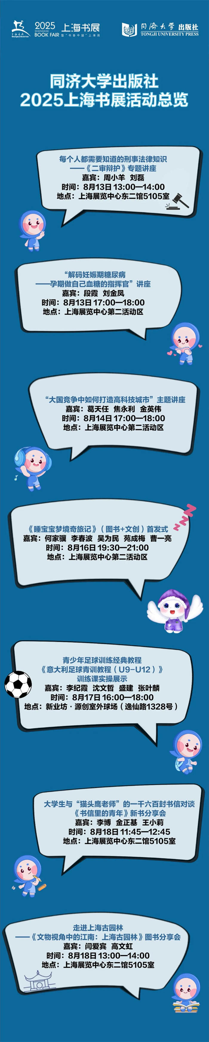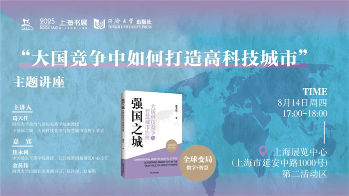 2025上海书展暨“书香中国”上海周将于8月13日至19日在上海展览中心(上海市延安中路1000号)及上海书城举办。本次书展期间,同济大学出版社将带来多场精彩活动。