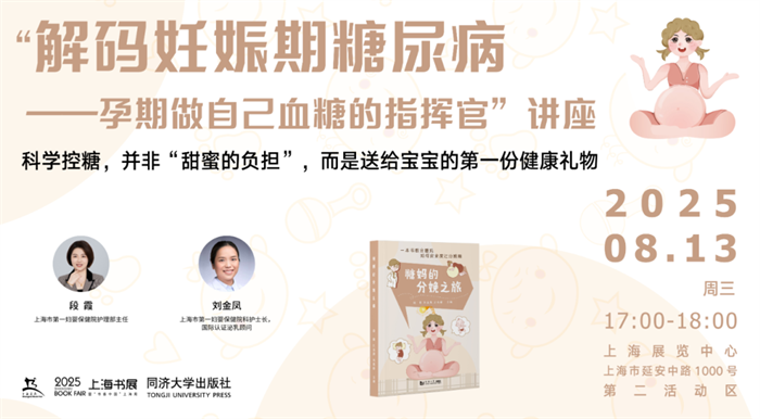 妊娠期糖尿病是产科常见的妊娠合并症,且发病率呈逐年上升的趋势,在我国约为15%。妊娠期糖尿病的发生会导致诸多不良妊娠结局,如早产、感染、产后出血、新生儿低血糖等,对母婴安全造成较大的威胁。由多家医院专家联合编写的,上海市静安区科学技术协会科普资金项目科普专项(KP2023058)资助的《糖妈的分娩之旅》,将于本次书展期间由主编团队进行科普讲座及签售活动。