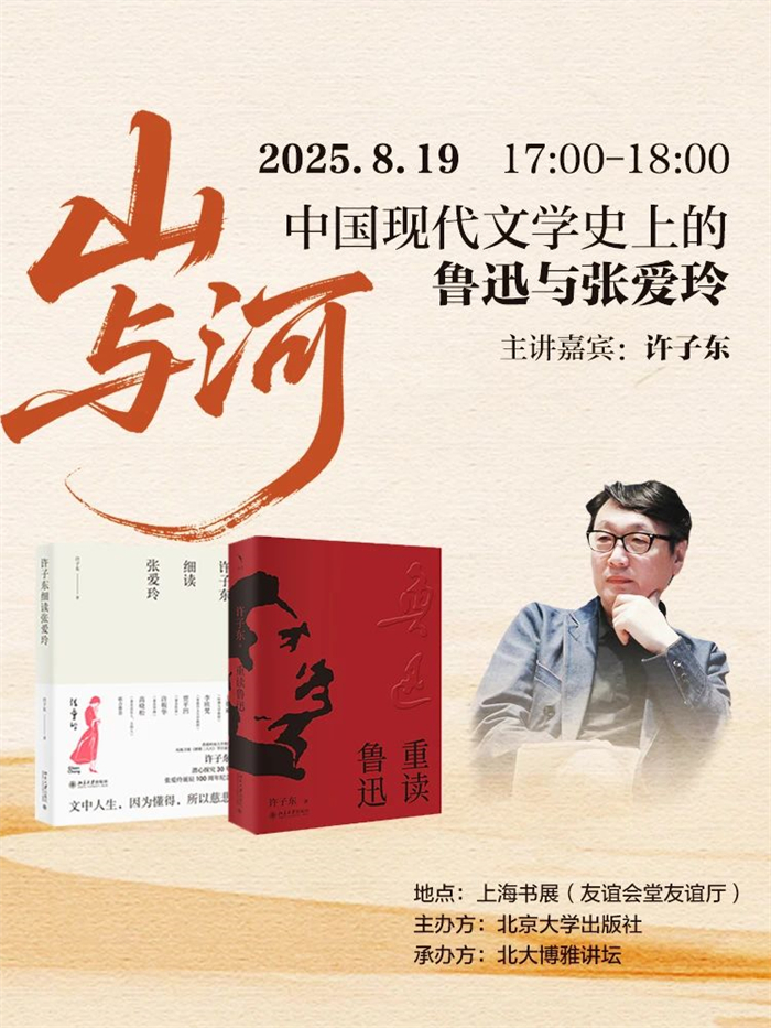 本次讲座,许子东老师从鲁迅和张爱玲的文本出发,带着我们剥茧抽丝,穿越时空,重新回到他们写作最初的语境,看山与河如何构造宏大叙事与日常生活彼此抵牾又并行不悖的时代精神图谱,更指引读者重新审视、激活两位作家作品的当代意义和价值。