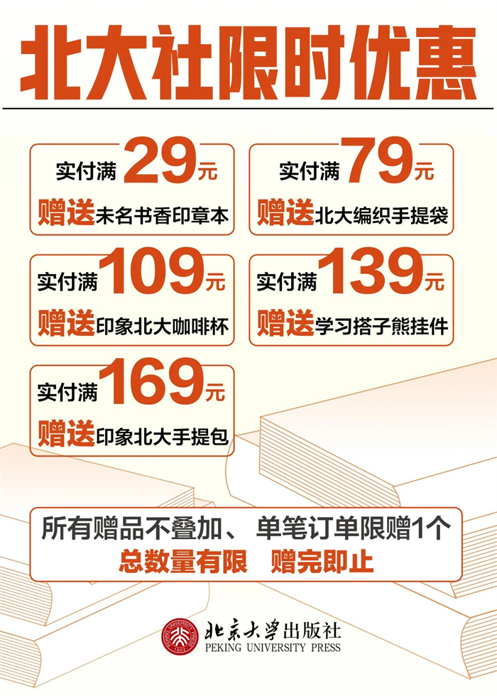 书展期间,到北京大学出版社展位购物即可享限时赠礼,实付满额即可获赠精选文创好物。