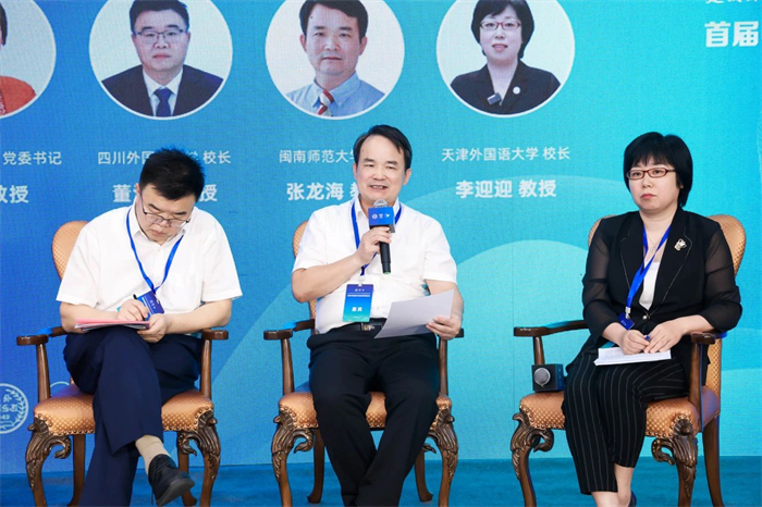 张龙海秉持开放包容的态度,明确提出要积极拥抱技术革新,以此应对专业发展挑战。同时,他特别强调了学校各部门、各层级之间建立高效沟通机制的重要性,为学校内部协同发展、共同推动教师成长指明了方向。接着,张龙海教授则从个人与学校两个层面,为助推外语教师个体成长提出了针对性举措。在个人层面,他鼓励外语教师要教学科研两手抓,以课程实践为切入点,结合自身科研兴趣深耕领域,明确目标;在学校层面,他强调学校应树立师生至上理念,让教师切实感受到归属感与认同感,为外语教师的成长营造良好的外部环境。