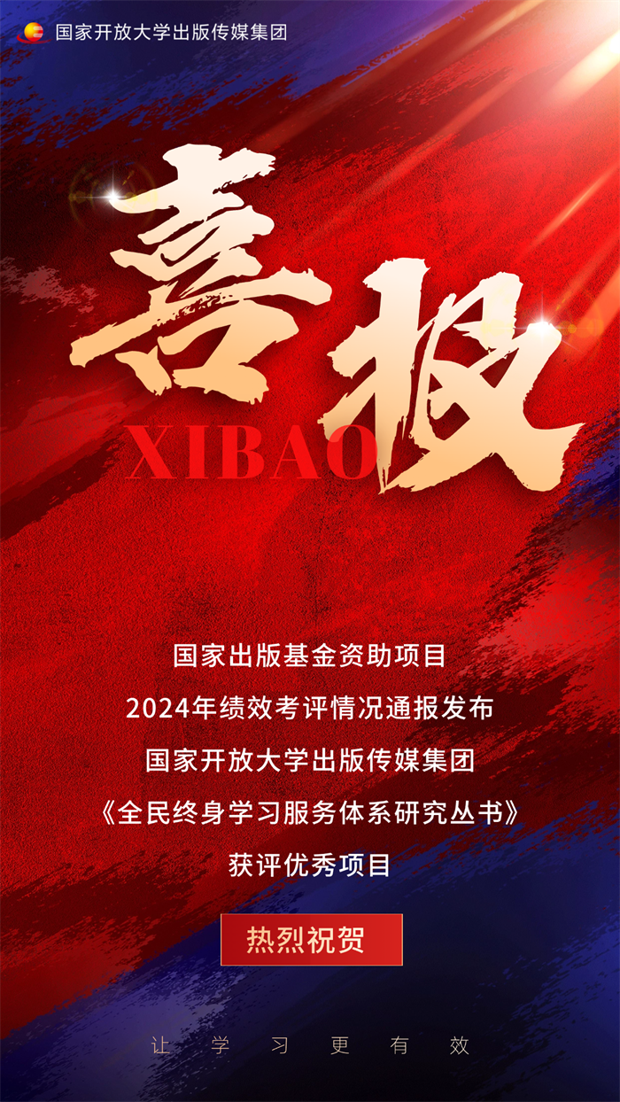 近日,国家出版基金规划管理办公室(简称“基金办”)正式发布《国家出版基金资助项目2024年绩效考评情况通报》(基金办〔2025〕15号)。在此次考评中,国家开放大学出版传媒集团承担的《全民终身学习服务体系研究丛书》项目荣膺“优秀项目”称号。