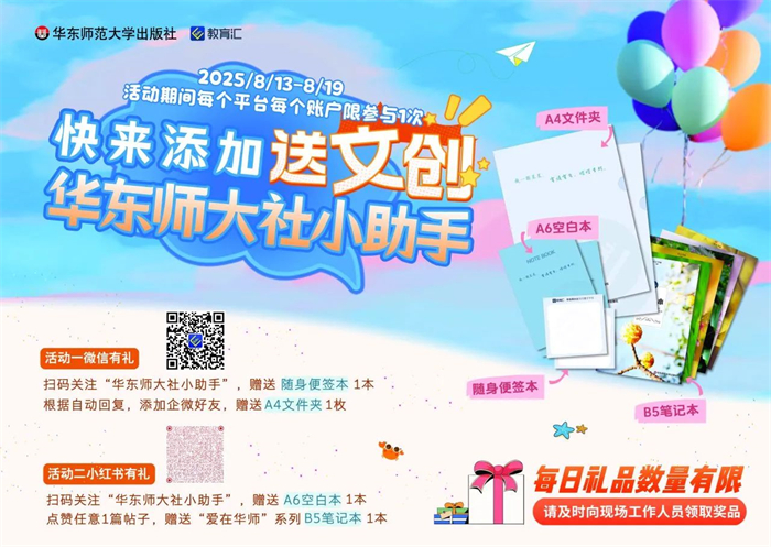 扫码关注“华东师大社小助手”,赠送A6空白本1本;