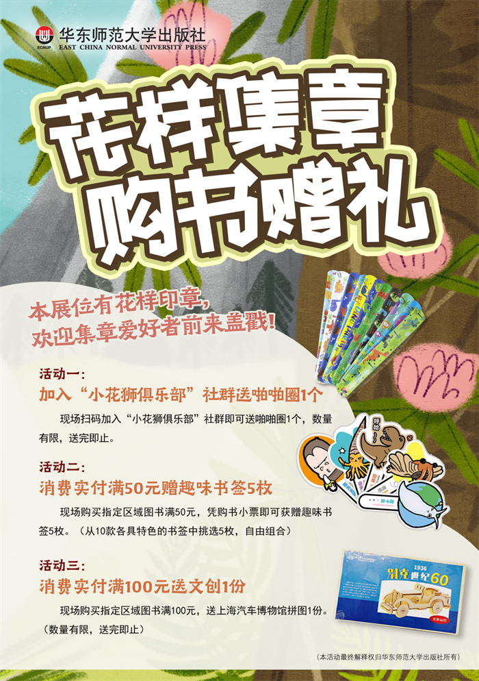 华东师范大学出版社专业直播团队将在书展7天持续直播,为线上读者带来诚意满满的图书福利,并邀请数位大咖学者、达人嘉宾做客展位直播间进行线上分享。