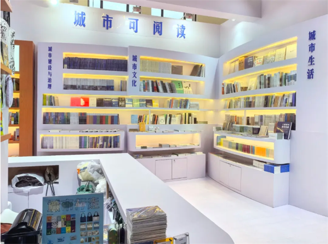 本次展位以“城市可阅读”为主题,深入践行习近平总书记“人民城市人民建,人民城市为人民”理念,展陈设计以学术为基、人文为魂、体验为脉,通过空间叙事将“人民城市建设”文化出版中心理念与成果生动呈现。展厅内专设“城市建设与治理”“城市文化”“城市生活”三大主题书架,荟萃近500种精品出版物,深度呈现城市肌理与发展智慧,并特别设置“互动留言墙”,邀请读者共绘城市蓝图,构建参与城市共建的沉浸式场域,共同书写我们的城市故事。