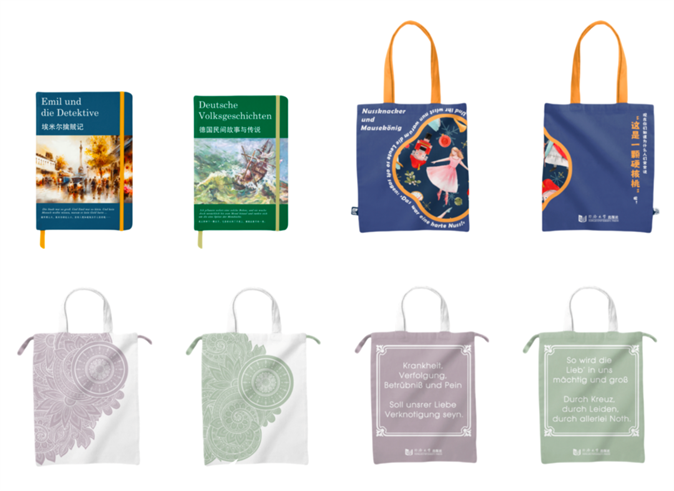 兼具学术气质与艺术美感的“德语百日阅读”系列帆布袋、“民歌集”系列护书袋等。