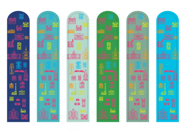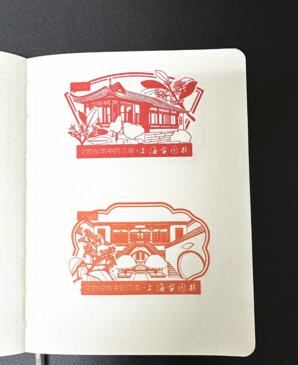 古典与现代建筑交织的“古韵今行”系列——拼图冰箱贴、透卡书签、杜邦纸包、镂空纸雕本。
