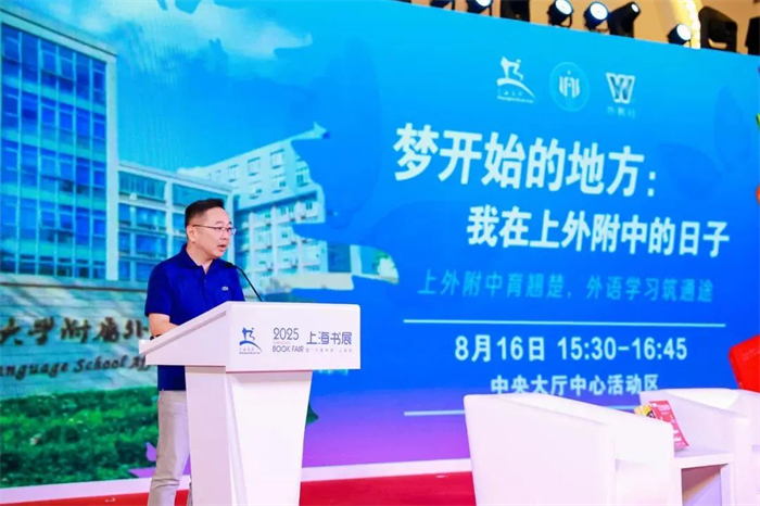 8月16日下午,上海外语教育出版社(以下简称“外教社”)携手上海外国语大学附属外国语学校(以下简称“上外附中”),在上海书展成功举办“梦开始的地方:我在上外附中的日子——上外附中育翘楚,外语学习筑通途”主题活动。本次活动以《梦开始的地方——上外附中多语种毕业生回忆录》为引,特邀杰出校友回望附中岁月,分享附中的外语教学特色,并探讨在数智时代背景下外语学习的独特价值与未来方向。活动现场座无虚席,反响热烈。