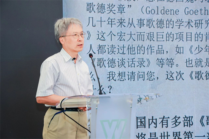 作为中国翻译协会“资深翻译家”及“金质歌德奖章”获得者,卫茂平为现场观众详细介绍了《歌德全集》翻译这一国家社科基金重大项目的进展与意义。他指出,此次《歌德全集》翻译不仅是国内首部汉语版歌德全集,也将成为全球首部外语版歌德全集,具有里程碑式的学术价值。他列举了国内已有的多部《歌德文集》(例如上海译文出版社、人民文学出版社、河北教育出版社等版本),强调全集翻译在文献完整性和学术严谨性上的突破。