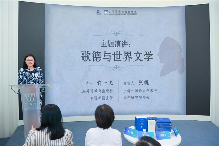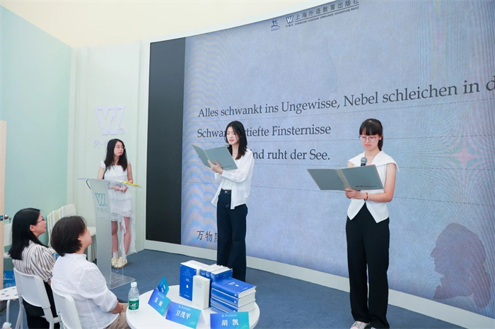 8月15日,由上海外语教育出版社主办的“以译通心:歌德诗歌汉译与中德人文交流”活动在上海书展外教社展台隆重举行。这是继2016年《歌德全集》(德文版)首发活动后,时隔九年再次举办的歌德主题文化交流盛会。