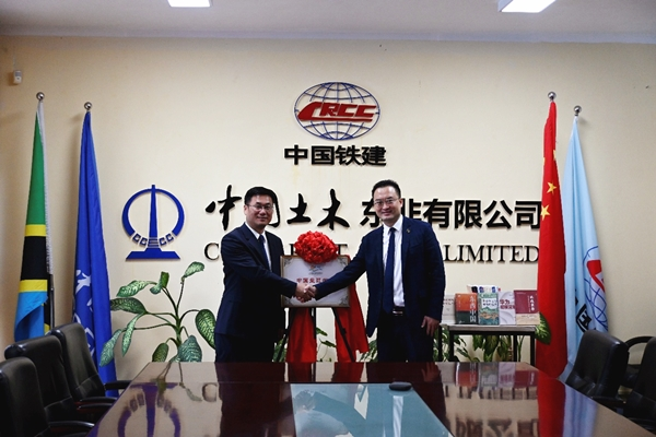 在坦桑尼亚,代表团访问了中国土木工程集团坦桑尼亚分支机构,举办图书捐赠仪式。