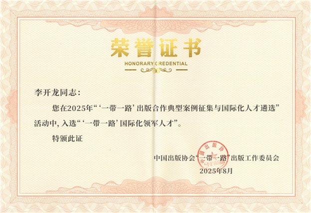 2024年,“‘中国式现代化研究丛书’多语种图书出版”入选“‘一带一路’出版合作典型案例(主题图书‘走出去’)”,版权经理魏佳羽入选“‘一带一路’国际化人才”。