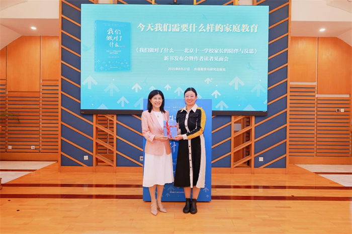 2025年8月27日,《我们做对了什么——北京十一学校家长的陪伴与反思》新书发布会暨作者读者见面会在外研社成功举办。本次活动以“今天我们需要什么样的家庭教育”为核心议题,汇聚教育管理者、专家学者及家长代表,共商家校协同育人实践。