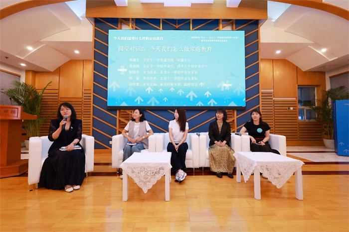 随后,刘艳凯、张智慧分别主持了两场圆桌对话。首都师范大学附属中学朝阳学校高中部副校长李浩英,北京顺义区高丽营第二小学支部书记、校长张岩,资深教育媒体人、“京城教育圈”主编罗德宏,北京十一学校直升高一年级主任张潇文,北京十一学校毕业生、清华大学哲学系学生惠禛曈,北京十一学校毕业生家长靳丽莹、韩琼等嘉宾共同参与。两场对话分别围绕“今天我们需要什么样的家庭教育”与“今天我们怎么做家庭教育”展开。与会嘉宾畅所欲言,以真诚的分享和多元的视角,深入探讨了“陪伴与反思”在家庭教育中的丰富内涵与实践路径。专家、教师、家长、学生及作者之间积极互动,现场气氛热烈,交流深入,为观众带来诸多启发。