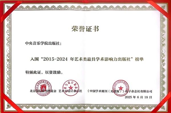 近日,中央音乐学院出版社入选“2015—2024年艺术类最具学术影响力出版社”榜单。该榜单由中国知网·中国科学文献计量评价研究中心联合北京国际图书博览会、《艺术与设计》杂志社共同评选,并在第三届北京国际艺术出版论坛上正式发布,旨在客观衡量我国图书出版单位在艺术出版领域的学术影响力。