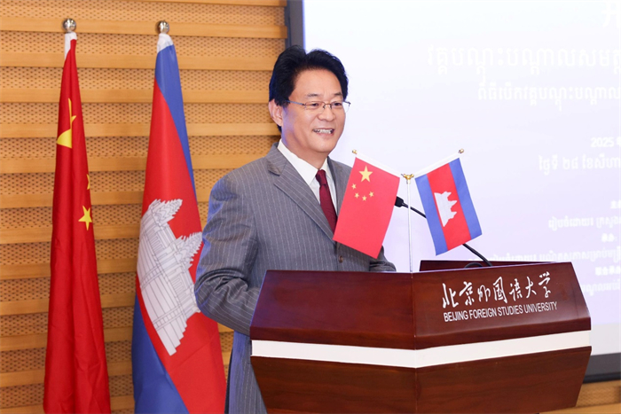 刘捷在致辞中表示,此次研修班的举办是深化“中柬铁杆友谊”、加强中柬新闻媒体、文化交流和语言教育领域联系的重要实践。他介绍了北外和外研社在中柬教育与出版领域的合作,特别是在内容生产、数字化传播、国际交流等方面取得的成果。他希望通过此次研修班,搭建交流平台,分享传媒经验,帮助柬埔寨来华官员深入了解中国媒体行业的发展理念与实践经验,进一步增强中柬两国在新闻传播领域的互学互鉴,促进双方人文交流和务实合作。