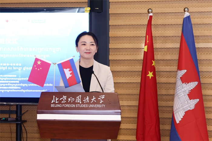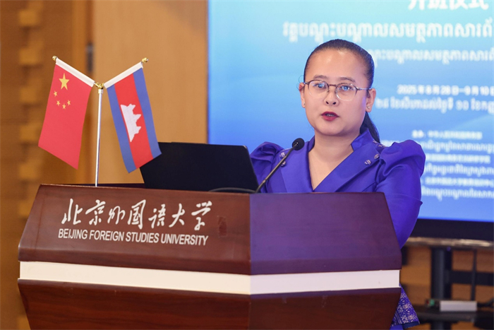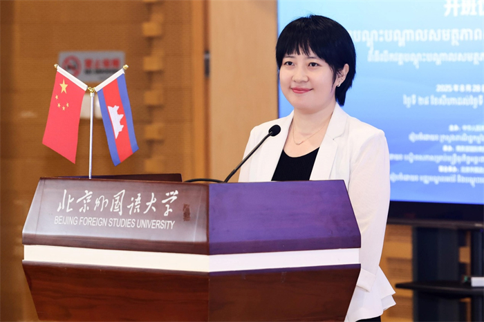 2025年8月28日,由商务部主办、商务部国际商务官员研修学院承办、北京外国语大学教育培训中心联办的柬埔寨新闻媒体能力建设研修班在北京外国语大学举行开班仪式。柬埔寨新闻与广电总局副总局长 CHHON Navy(崇娜薇),外研社党委副书记、副董事长、总编辑刘捷,北京外国语大学国际新闻与传播学院新闻出版系主任、副教授刘沫潇,商务部国际商务官员研修学院项目官员李欣桐,以及来自柬埔寨国家广播电台、国家电视台、通讯社、新闻与广电总局及行政和财务总局的25位官员参加了开班仪式。