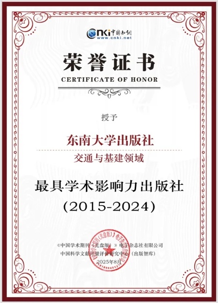 近日,在第十五届中国国际数字出版博览会“技术与出版双向赋能创新研讨会”上,中国知网发布了出版社学术影响力评价系列报告。其中,东南大学出版社入选最具学术影响力出版社(交通与基建领域),在全国出版社中位列第五、在高校出版社中位列第二;入选高校出版社学术影响力TOP20(自然科学与工程技术领域),在高校出版社中位列第三。