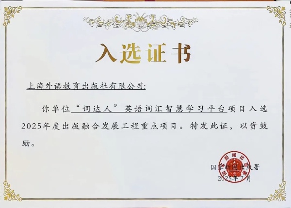 经国家新闻出版署正式批复,上海外语教育出版社(以下简称“外教社”)自主研发并运营的“词达人”英语词汇智慧学习平台,成功入选2025年度出版融合发展工程重点项目。全国仅40个项目获此殊荣,“词达人”是其中唯一专注外语词汇深度学习的专业化数字教育平台。