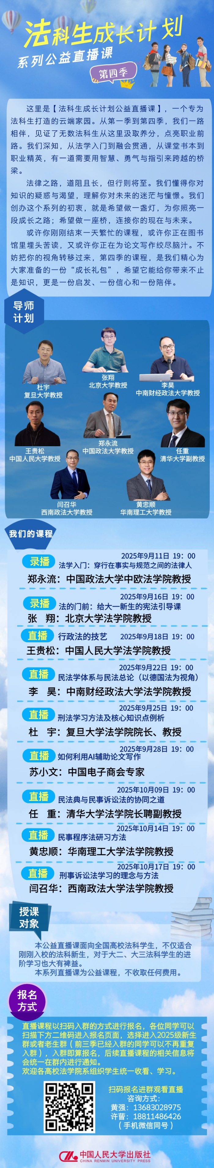 中国人民大学出版社直播预告 | 法科生成长计划公益直播课(第四季)