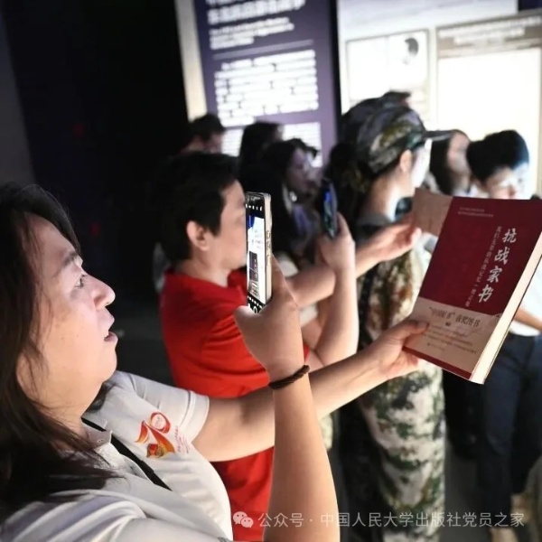 9月10日,为铭记历史、缅怀先烈,弘扬伟大的抗战精神,致敬伟大胜利,中国人民大学出版社(以下简称“人大社”)人文大众党支部、行政党支部和出版联合党支部组织党员群众赴中国人民抗日战争纪念馆参观“为了民族解放与世界和平——纪念中国人民抗日战争暨世界反法西斯战争胜利80周年”主题展览。本次活动以人大社出版的《抗战家书》《〈黄河大合唱〉简史》两种精品图书为载体,设计家书共读、打卡互动、红歌传唱等特色环节,通过“党建+出版”的沉浸式教育模式,引导党员群众在重温历史中传承红色基因,在业务实践中强化使命担当,进一步激发干事创业的责任感与行动力。人大社党委书记、董事长李永强,总编辑谢富胜,副总经理王磊,党委副书记、纪委书记刘玮参加活动。
