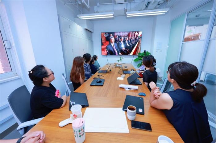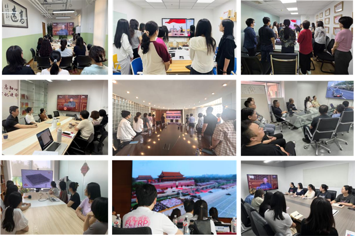 9月3日上午,纪念中国人民抗日战争暨世界反法西斯战争胜利80周年大会在天安门广场隆重举行。外研集团(外研社)党委提前部署安排,在全社设置多个分会场,公布专属直播地址,各部门负责人切实履责,合理协调时间安排,确保全体员工集中统一观看。领导班子全体成员及各部门负责人在九层会议室集中观看,其他干部员工以部门为单位,分别在会议室及办公室等分会场同步集中观看。