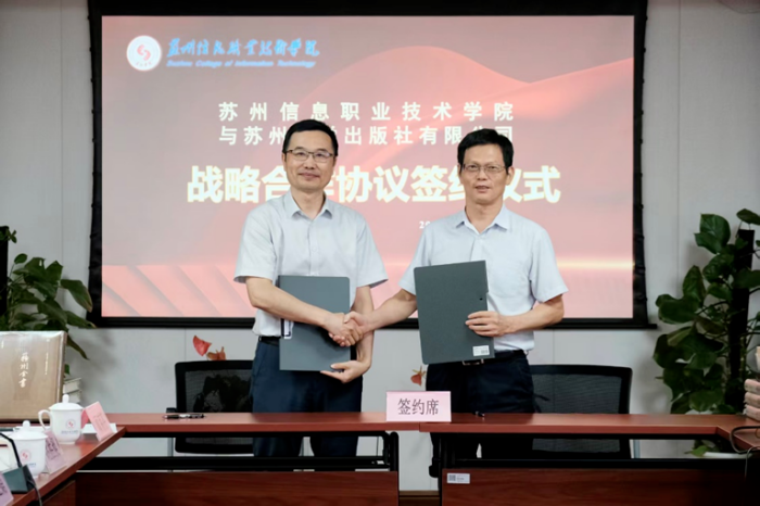 10月11日下午,苏州大学出版社(以下简称“苏大社”)与苏州信息职业技术学院(以下简称“苏信院”)举行了战略合作协议签约暨赠书仪式。