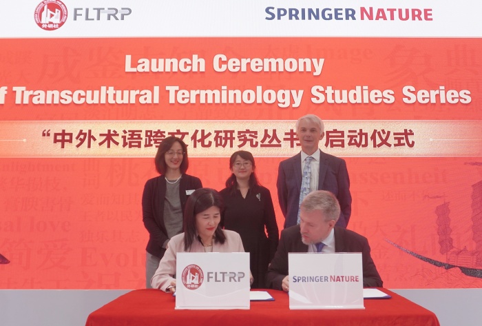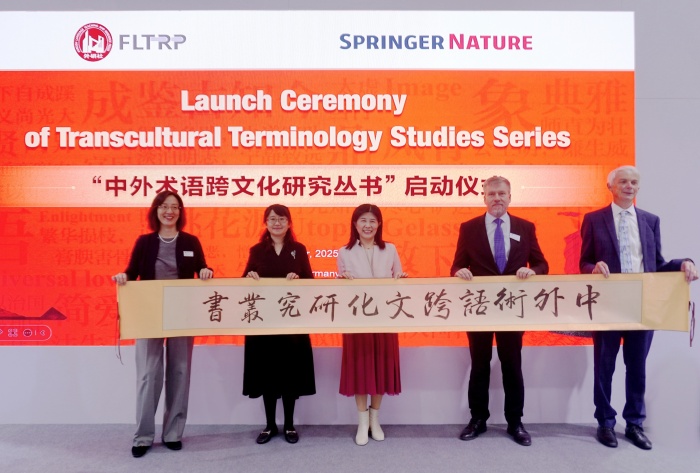 2025年10月16日,外语教学与研究出版社(简称“外研社”)与施普林格・自然集团在第77届法兰克福书展上联合举办“中外术语跨文化研究丛书”项目启动仪式。中宣部进出口管理局相关负责人,外研集团(外研社)党委书记、董事长,外研社社长王芳,施普林格・自然全球图书负责人及执行副总裁汤恩平博士(Dr. Niels Peter Thomas),牛津国际出版中心主任费安格(Angus Phillips),施普林格•自然集团中国区图书总监李琰等嘉宾共同见证这一推动全球学术对话与文明互鉴的重要时刻。该丛书是双方继“中华学术文库”“中华思想文化术语研究”之后,携手打造的第三套大型开放式系列丛书,标志着两大出版机构在跨文化学术传播领域的合作迈入深度协同的新阶段。本次活动由外研社高等英语教育出版分社社长任倩主持。