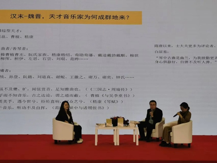 活动中,程乾老师不仅进行了深入浅出的讲解,还为现场观众提供乐谱、亲自示范了韵味悠长的琴歌演唱,让观众得以直观感受古代士人的音乐风貌。分享会还特邀中央音乐学院出版社社长赵海作为对谈嘉宾,围绕书中的核心内容展开富有启发的讨论,并与现场观众进行互动交流。
