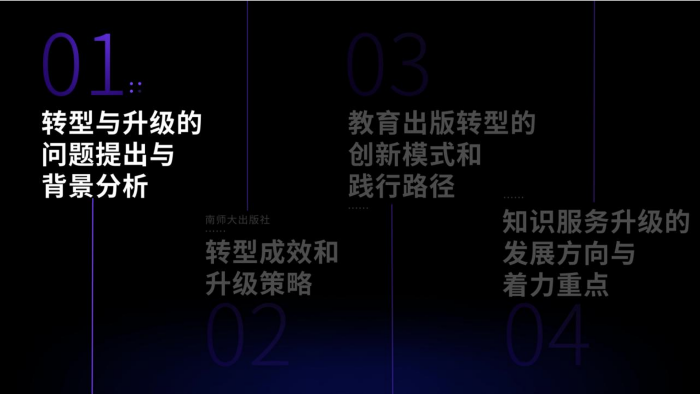 南京师范大学出版社党委书记、社长张鹏结合出版社近期在图书出版方面取得的成果,分享该社探索教育出版转型与升级的路径、模式和策略。他认为,目前传统教育出版模式面临四个“失”的挑战,大学出版社要从各种路径推进出版融合发展,突出“点、线、面、圈”四个重点,主动拥抱技术变革,围绕数字化智能化建设、产品打造、人才队伍建设等方面探索转型和知识服务升级之道。